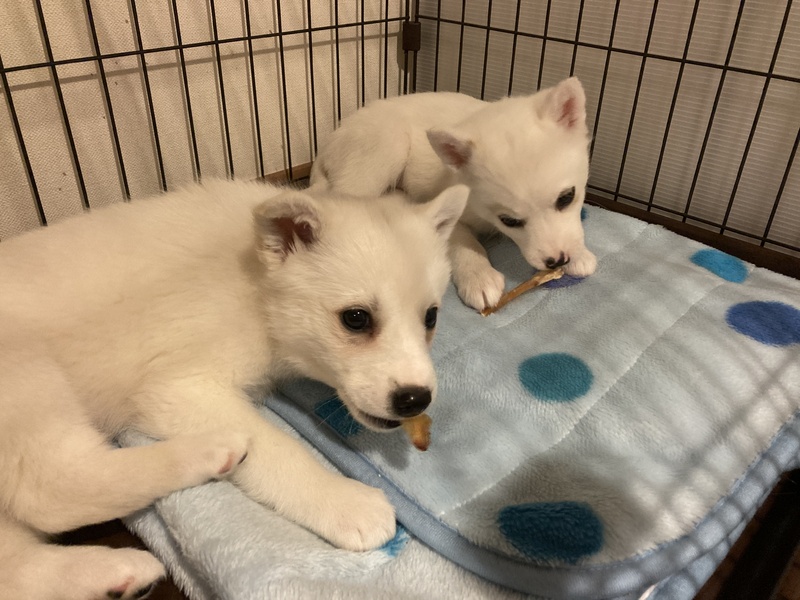 | 特徴(性格など) | 【仮名】キレ 【生年月日】推定2023年1月初旬頃生まれ 【種類】MIX 【成犬時サイズ】中型犬(10〜15kg位まで)になると思います。 【毛色】ホワイト 【性別】オス 【去勢】適正時期になり次第飼い主さまで必ずお願い致します。 【ワクチン】生後2ヶ月を迎える頃に接種予定 【駆虫】済み 【健康状態】良好です 【単身・高齢者】応募不可 【性格】人が大好きです。シッポぶんぶん振って後ろをついてきます。積極的で物怖じしないタイプです。社交的で甘えん坊です。 【トイレ】70%くらいの成功率です。 【就寝・お留守】ケージです。夜泣きもなく大人しく寝ます。人の姿や物音がすると少し吠えることもありますが、しばらくすると諦めて大人しくなります。(兄妹犬と一緒にいるため) |