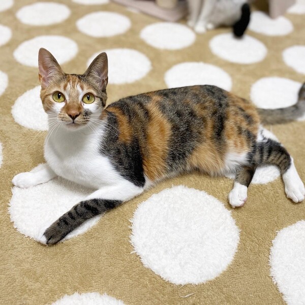 | 特徴(性格など) | 2/19(日)奈良市で開催する譲渡会に参加します。 ↓詳細は下記をチェック↓ https://www.instagram.com/nara.chiiki.neko/ https://www.facebook.com/nara.chiiki.neko/ 譲渡会以外でも個別お見合いが可能ですので、ご応募お待ちしております。 メロディちゃん♀ 1歳の女の子 医療ケア済 TNR現場にて保護しました。 人懐っこくて甘えん坊な、愛くるしい三毛猫ちゃんです。お布団でも一緒に寝てくれます。兄妹で一緒になって飛び跳ねて遊んだり、膝の取り合いをしたり、ピッタリくっついて寝ている様子は見ていてとてもホッコリします♡ メロディは先天的に軽度の心疾患がありますが、日常生活で注意しなければいけないことも特になく、疾患が分かる前も分かった後も何も変わらず賑やかな毎日を過ごしています。半年を目安に定期検診に行っています。 リズムと兄妹です。兄妹一緒にお迎えいただけるおうちを希望します。 |