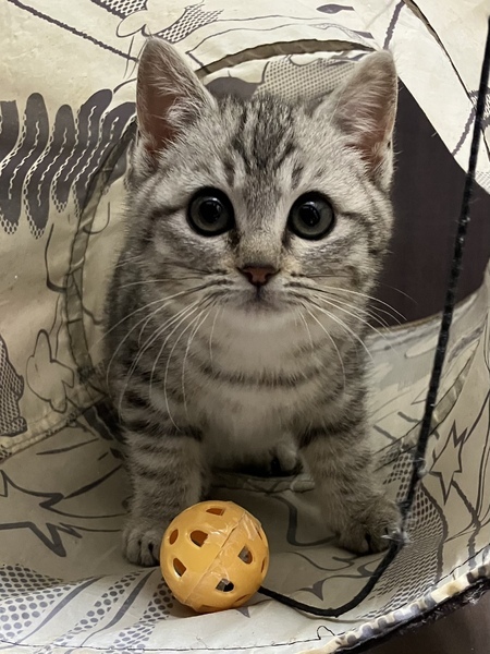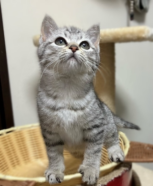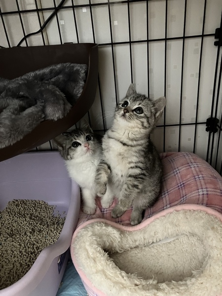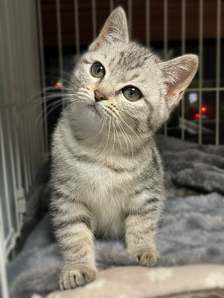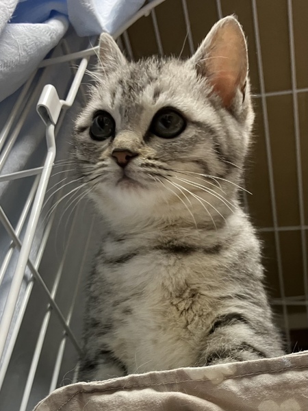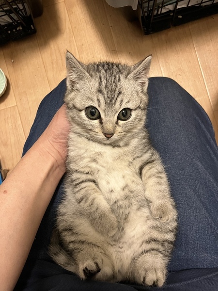 | 特徴(性格など) | ?まりこちゃん ?サバトラ 3か月 ?女の子 ?ノミダニ駆除済 ?エイズ、白血病陰性 ?ワクチン接種済 短足でフワフワでぽっちゃりした体格です。最初は触れる事は出来ましたが慣れてませんでした。ビビりだけど、安心した所では撫でるとゴロゴロいいます。 控えめでおっとりさん。食欲旺盛。 |