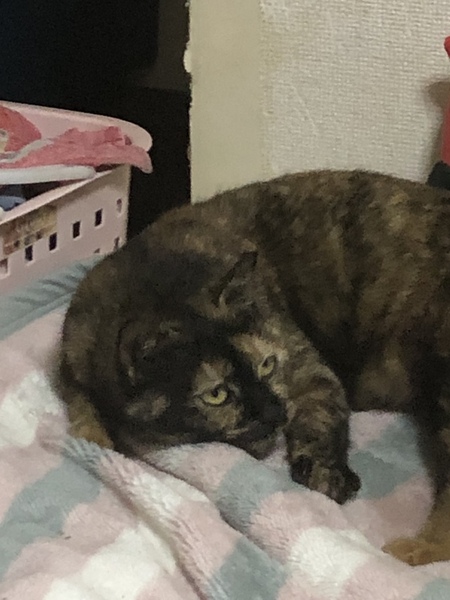 | 特徴(性格など) | 名前…あきこ 柄…個性的なサビ柄さんです。 性格…怖がりさんで抱っこはできないでいます。もっと時間をかけるといずれ抱っこも出来そうな気はします。触ったり撫でたりは出来、お腹などをみせてもっと撫でてと甘えてきます。人は大丈夫ですが猫には少し厳しくうちの先住猫を見るとシャーシャーと威嚇します。今のところケンカまでには発展していません。 |