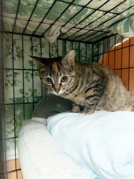 | 特徴(性格など) | キジトラのクロちゃん。シロちゃんと きょうだいです。 ちょっと恥ずかしがりやさん。 チュールが欲しい時も、じっと待ってから手を出してきます。 本当は遊びたいのになかなかできないタイプのようです。 まだまだ修行中です。 どうか、クロちゃんを家族に迎えてくださいませんか? |