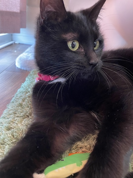 | 特徴(性格など) | 黒猫で首の下だけ白いです。 性格は人懐っこく甘えたです。 撫でてもらうことが大好きで 遊ぶことも大好きです。 |