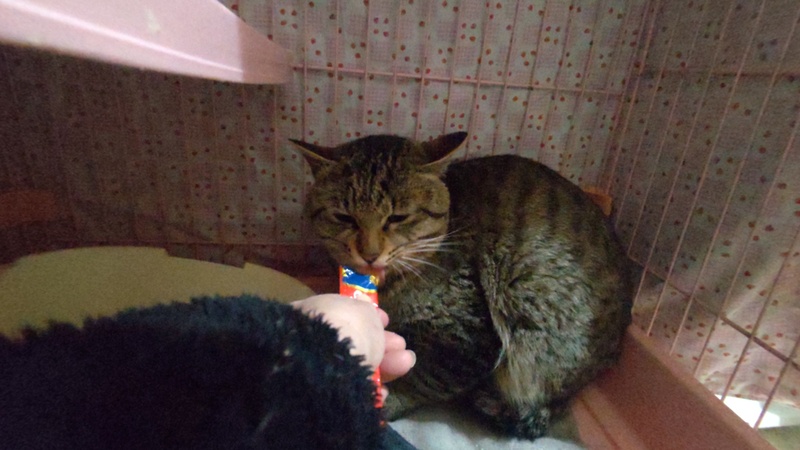| 特徴(性格など) | 丸くて大きなお顔の男の子です 外にいる時は撫でると腰パンになったり目の前でひっくり返ったりムニャムニャお喋りしながらご飯を食べていました 保護施設に来て緊張と不安で固まり唸っていますが撫でると気持良さそうにしますし指先からチュールも美味しそうに舐めます 2月9日去勢手術 ワクチンは記入が必須なので手術日と同じ日にしましたがワクチンは未接種です ノミダニ駆除済み ウイルス検査予定 少し時間はかかっても慣れたら甘えん坊になりそうな男の子です |