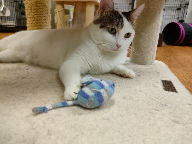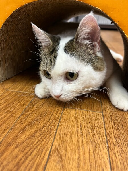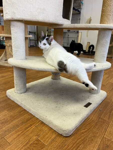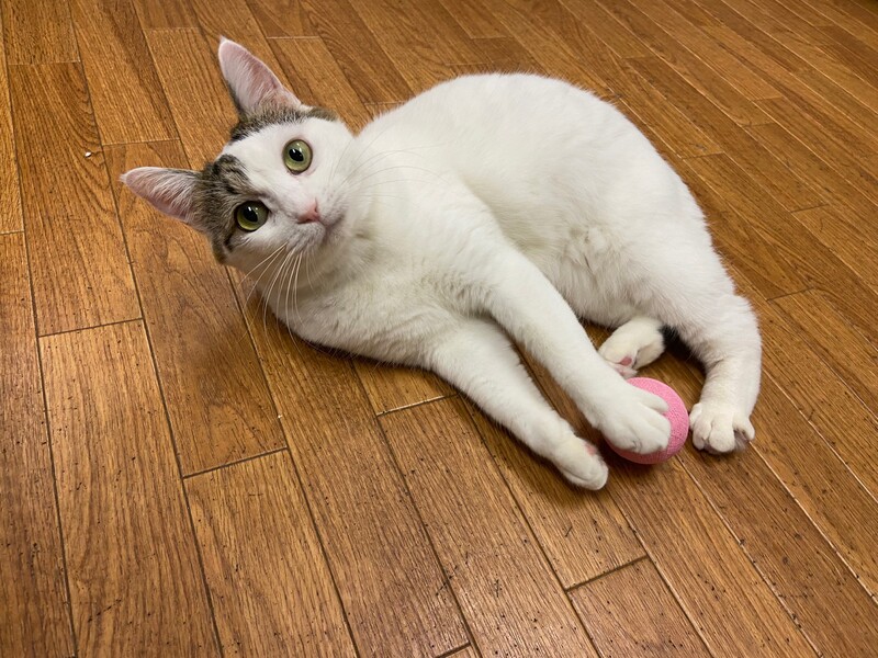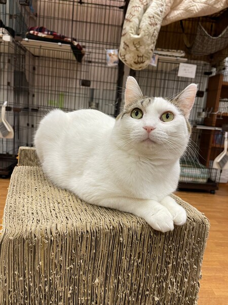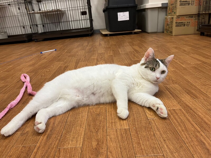| 特徴(性格など) | 2018.6.19生まれ(推定) 毛色:キジ白 頭にキジ模様、ボディは真っ白な女の子。 実は後ろ足にも普段は見えない隠れ模様が♡ 4匹の子猫を育てた立派なお母さん猫です。 お外で過酷な生活を送っていた影響か、自らしっぽを噛んで痛々しい姿で保護されました。 避妊手術の際、苦渋の決断で断尾となりましたが、沢山の愛情を注がれ、 徐々に心も安定し、今は元気いっぱい・遊ぶの大好きな あむちゃんです☆ 子猫達も無事皆里親様が見つかり、次は あむちゃんの番!! 素敵な出会いを待っています☆ |