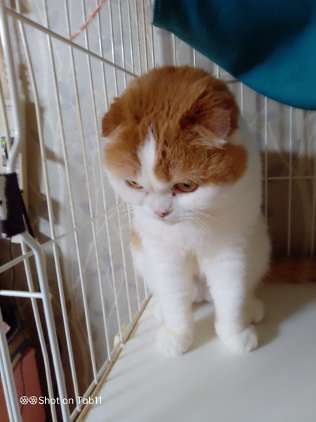 | 特徴(性格など) | スコティッシュで耳折れ抱っこは基本いやがりますが甘えんぼうなところありツンデレです。人間には慣れてます。なつっこいです。 | ||