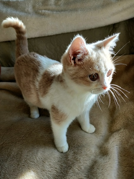 | 特徴(性格など) | クリームタビーアンドホワイト 慣れ慣れです 短足マンチカンと脚長マンチカンです |