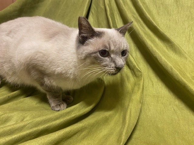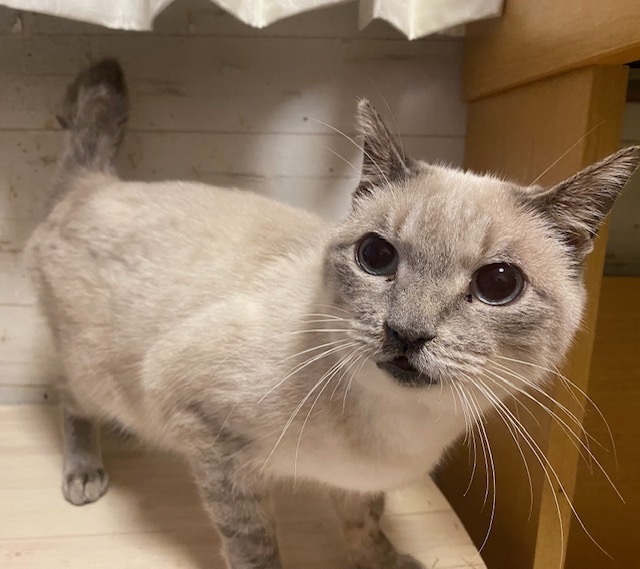 | 特徴(性格など) | シャムmixで目が青くてきれいな猫です。 おとなしくてひとなつこい性格です。 少し鼻詰まり気味ですが、食欲もあり元気です。 |