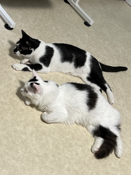 | 特徴(性格など) | 長毛と短毛の白黒兄弟です 長毛の子は抱っことナデナデが大好き? 短毛の子は釣り竿型の猫じゃらしで遊ぶのが大好きです 初めはちょっとビビりですが、とっても甘えんぼうの可愛い性格をしています |