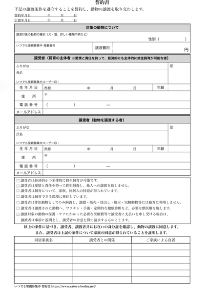 | その他(譲渡条件など) | ・最期まで責任を持ってお世話できる方 ・1年間、1ヶ月に1回お写真を頂きたいです。 ・完全室内飼ができる方 動物を虐待する方がいますので、対策のため誓約書にサインをして頂きたいです。その際にご本人様と確認できる身分証明書を持ってきていただけると嬉しいです。 |