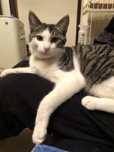 | 特徴(性格など) | サバ白雑種の男の子です 人懐っこくて甘えん坊で抱っこが大好きです 爪とぎやトイレの失敗もなく、爪切りやブラッシングも上手にできます 遊ぶのが大好きで、遊んでと甘えてきます |
