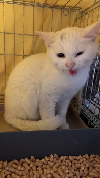 | 特徴(性格など) | 全身真っ白ですが頭にグレーの模様が一つあります。 | ||