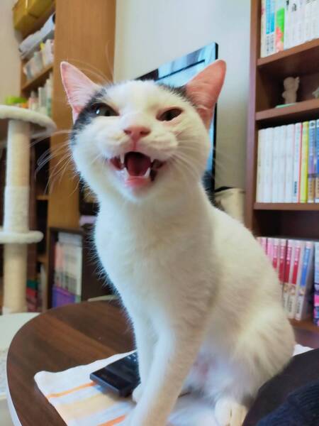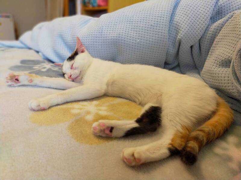 | 特徴(性格など) | エリザベス (エリちゃん) 性格:顔の皮膚が割れていく症状がではじめてから、厳しい闘病生活を無事に克服し、元気に遊び回れるようになったエリザベス。 お顔の毛も少しずつ生え揃い、どんどん可愛く成長しています。 オモチャは両手で抱えて放り投げ、ピョンピョン飛び跳ねて遊ぶ姿はとってもキュートw 甘える時はニャアニャア可愛く頭突きしまくります♡ 遊び疲れたら人にもたれて休憩?? チャームポイント3つ❣️ ①三毛ですが体は真っ白☆ 後ろ足のタイツみたいな模様がオシャレです ②皮膚再生のとき向きが変わってしまった一本のおヒゲ!! 目に向かって生えるので気になって仕方ありませんが病院でカットしてもらってますw ③濃いピンクの肉球すべてに真っ黒ポイントが❤ぷにぷにです |
