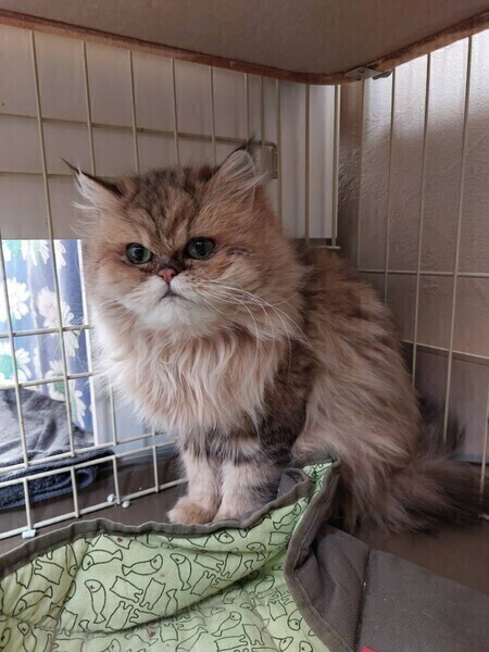 | 特徴(性格など) | ◆デオコちゃん 人馴れ訓練中の薄茶色のペルシャの女の子 ○多頭飼育崩壊現場から保護されました。 ○推定2~5歳くらい(2023年2月中旬時点、獣医さんより)の長毛のシェーデッドゴールデンの女の子です。体重は2.95㎏(2023年2月5日時点)です。 ○しっぽは長くて真っ直ぐ。 ○恐らくペルシャと思われます。 ○劣悪な環境にいたため、臭いが身体に染み付いており、気にならなくなるまで少し時間がかかるかもしれません。 ○くりくりなお目目がチャームポイントです。 ○生まれてから恐らく飼い主以外の人間を見たことがないため怖がりです。 ○今はまだ触ろうとすると手が出てしまいますが、おもちゃで遊ぶのが大好きで、おもちゃに夢中になっていると触れます。 ○ちゅーるも大好きなので、おやつやおもちゃで気を引きながら少しずつ人馴れ訓練が出来ると思います。 ○長毛ですし毛量も多いので毛玉が出来やすいですが、ブラッシングはまだ難しく、撫でれる様になったら少しずつブラシに慣らしていく必要があるかと思います。 ○劣悪な環境からようやく解放されたばかりです。 まだ人間が怖い様ですが、遊ぶのが大好きな無邪気な性格ですので、いっぱい遊びながらデオコちゃんのペースで見守っていただければと思います。 ★ワクチン2回済み、不妊手術済み。 ★猫エイズ、猫白血病ともに陰性。 ☆単身のかたはご相談ください。 ○HGA48犬猫ニュースチャンネルにて、保護現場の様子を紹介しています(開始31分頃〜)。こちらもご覧下さい。 https://youtu.be/qULBePrcuhQ ○YouTubeにも動画をあげています。こちらもご覧下さい。 「デオコ」https://youtube.com/shorts/Cc4oGCfx3gg ★★お見合いを設定することも可能です。まずはお申込みください★★ |