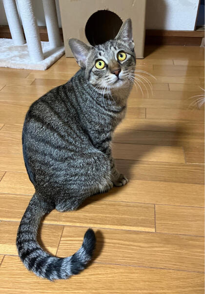 | 特徴(性格など) | 元野良猫出身なので警戒心はありますが、一度慣れてしまえば飼い主さんにだけはスリゴロの甘えん坊に大変身! 食欲旺盛で元気いっぱいの子です。 ゚+:。.。:+゚゚+:。.。:+゚゚+:。.。:+゚゚゚+:。.。:+゚゚+:。.。:+゚゚+:。.。:+゚゚゚ ボクはアポロだよ! 毎日ご飯は美味しいし、オヤツも大好き 遊ぶ事も大好きだから猫じゃらしなんてあったらついつい釣られちゃうよ ゚+:。.。:+゚゚+:。.。:+゚゚+:。.。:+゚゚゚+:。.。:+゚゚+:。.。:+゚゚+:。.。:+゚゚゚ 【性格】ハンサム顔のキジトラ猫ちゃんのご紹介です。 年齢は生後約10ヶ月ぐらいなので、まだ一歳未満の大きめの子猫だと思ってください。 とは言え、体は立派に大きく成長をしておりますが、心は少年そのものでまだまだ子猫ちゃんのよう。 人間で言えば小学校の校庭を元気よく駆けずり回る元気な男の子と表現するのが一番当てはまっているように思います。 アポロくんは、元野良猫の子猫として保護した子です。 世田谷区のTNR現場にて、既に4ヶ月近くになっていた三兄弟達の可能性を信じて、保護しました。 元野良猫らしく、警戒心が強い子達でしたが、人間は嫌いではないらしく、一度慣れて心を許してしまえばスリゴロに大変身します。 基本的に、ビビリなので、ピンポーンなどのインターホンや来客があるとパニックを起こして逃げ回ります。 猫同士の社会化は抜群で、特に年上の猫ちゃんの事が大好きです。 あとは、台所泥棒には要注意です! 食いしん坊なので、食べ物には目がないです。 ある意味、単純なのでオヤツとオモチャがあれば釣られてしまうので、扱いやすいと思います。 警戒心が強い事と、来客時のパニックなどをご理解くだされば、堪らなくかわいい子です。 攻撃性は、いっさいなく、抱っこも爪切りもさせてくれます。 警戒心だけご理解くだされば、もうすっかり家猫となっております。 この子達の家猫訓練の過程を、ずっとYouTubeちゅー猫チャンネルにてアップし続けていました。 最近の様子はこちらをぜひ!ご覧ください。 https://youtu.be/WQAFLl1q640 お仕事をフルタイムでお持ちのご家庭でも問題なくお留守番できます。 先住猫さんさえ受け入れてくだされば、この子は末っ子タイプになれる子なので、猫が大好きな子です。 警戒心は強めですが、飼い主さんにはスリゴロになる子達ですので、迎えてくださる里親様は堪らなくかわいいと思います。 どうぞ、よろしくお願い申し上げます。 |