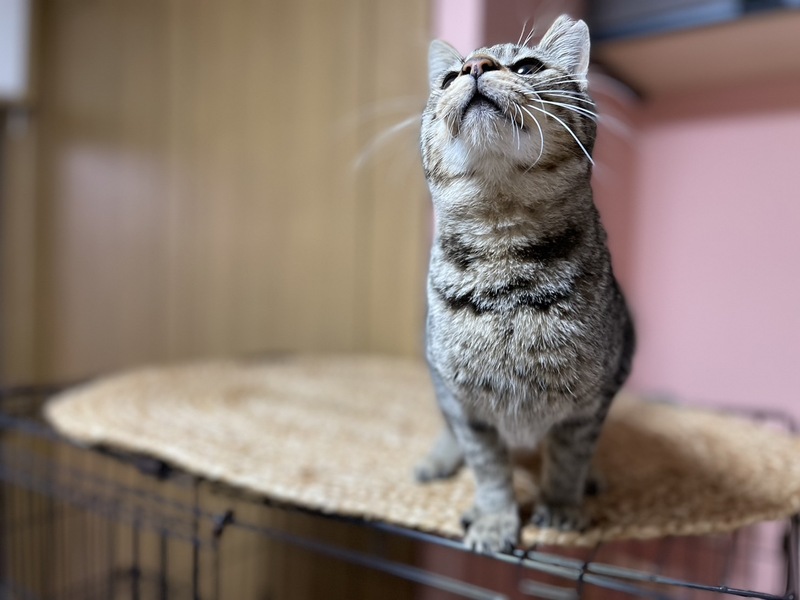 | 特徴(性格など) | キジの女の子です。びっくりするほど人が大好きです。常に人と一緒に居たい子です。 誰にでも懐きます。懐く子が飼いたい!という人にぴったりです。 |