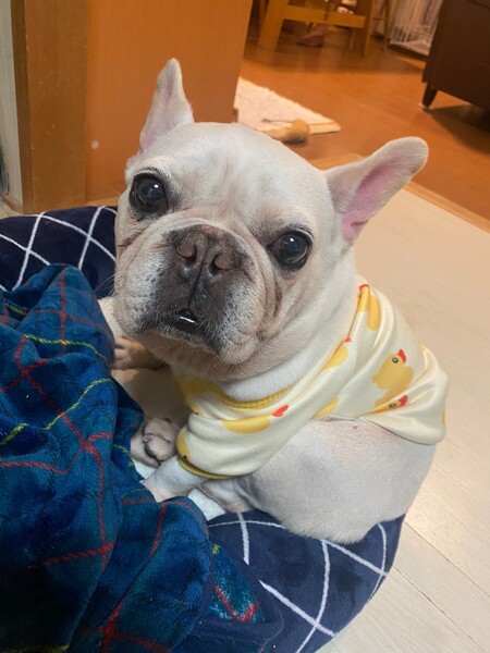 | 特徴(性格など) | ■特徴(仮の名前:きぬ) フレンチブルドッグ ♀ 推定8歳 体重9.5キロ ■性格・暮らし ・穏やかで控えめな性格ですが、人が大好きでそばに居たい子です。 ・フリーでお留守番、就寝ができます。 ・他犬とも問題なく過ごせます。 ・おトイレは練習中です。 ・お散歩は歩けます。 ■今までに行った医療行為 ・避妊手術 ・混合ワクチン接種 ・フィラリア抗原検査(ー) ・検便 ・歯石除去 ・血液検査 ・マイクロチップ装着 ■今後行う予定の医療行為 ・なし |