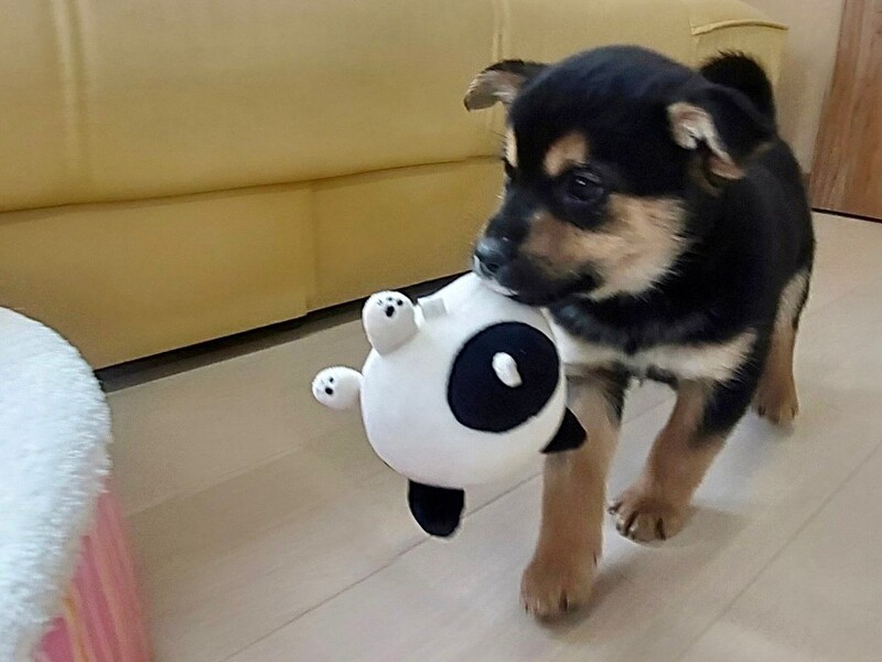 | 特徴(性格など) | 【名前】お市 【生年月日】推定2023年1月初旬頃生まれ 【種類】MIX 【成犬時サイズ】中型犬(10〜15kg位まで)になると思います。 【毛色】ブラックタン 【性別】メス 【避妊】適正時期になり次第飼い主さまで必ずお願い致します。 【ワクチン】生後2ヶ月を迎える頃に接種予定 【駆虫】済み 【健康状態】良好です 【性格】好奇心旺盛でヤンチャに楽しく遊び倒して、コテンッ!!と寝ます。甘噛みしますが、注意するとやめます。目をじっと見て考えているので、もうすぐアイコンタクトできるようになってきています。 【トイレトレーニング】ケージの中では完璧です。フリーの時も自らトイレシートに行ってすることが、ほとんどです。クンクンし始めたら、トイレに誘導することで上手にできるようになると思います。 【就寝・お留守】 ケージで静かにすごしています。ご飯時間が近付き、お腹が空いたら騒ぎます。 【譲渡時期】生後2ヶ月を迎え、1回目のワクチン接種後の譲渡となります。 |