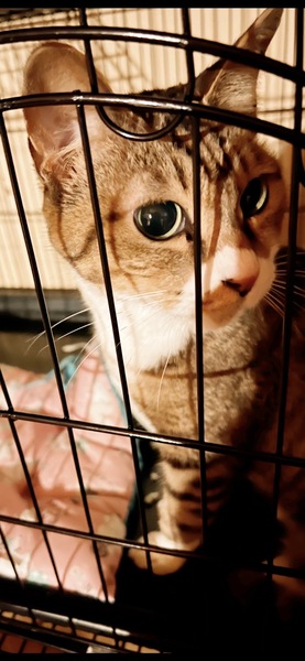 | 特徴(性格など) | キジシロの可愛い女の子です。 やや太い真っ直ぐの尻尾です。 シャーシャー言う時があります。 この子は1匹飼いで飼って下さい。 |