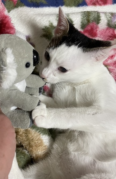 | 特徴(性格など) | 切りすぎた前髪柄がチャームポイント☆ 人も猫も好きな子で、おとな猫にも可愛がられます! 天真爛漫な性格で遊ぶのが大好き!小さいお子さんのいるご家庭にも良いと思います◎ ちゃんと兄弟。 兄弟一緒なら長いお留守番があるご家庭でも大丈夫です。 左眼に少し白濁がありますが、おうちの中での生活に全く支障ありません。 |