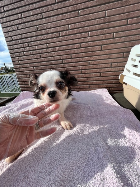 | 特徴(性格など) | チワワらしく怖がりさんです。 あまり動かずじっと様子を伺いますが、攻撃的な面は一切ない子なので、ゆっくりと心を通わせていただけるご家族を探しています。 臆病なため、活発な小さなお子様が居ない落ち着いた大人のご家族向きです。 |