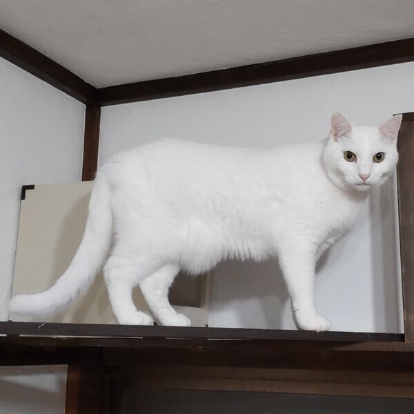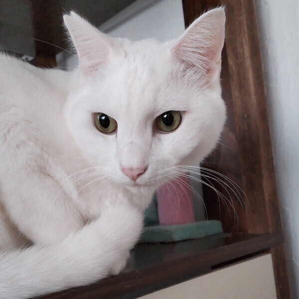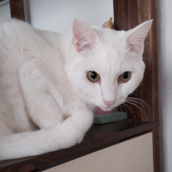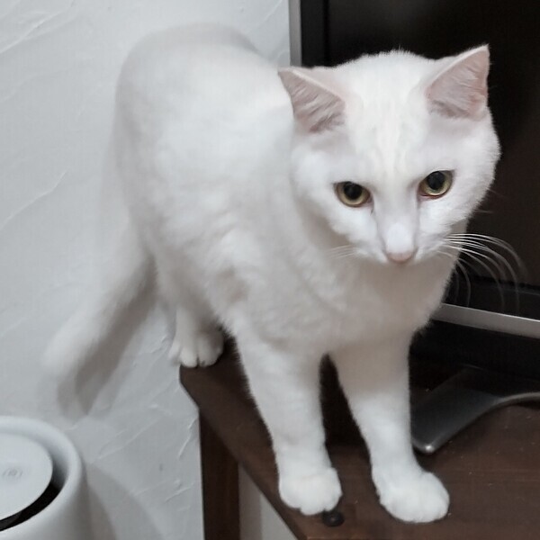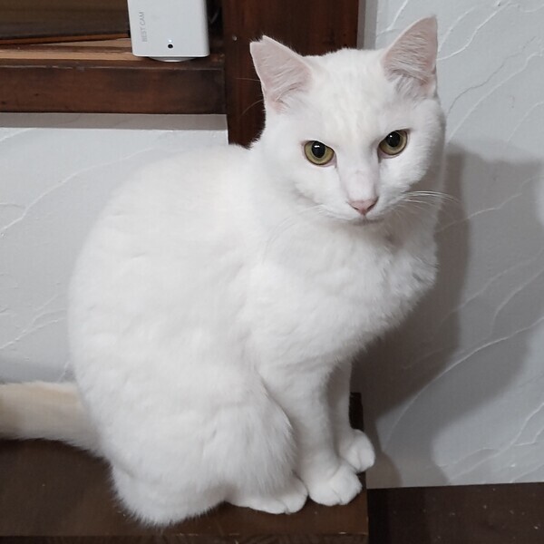 | 特徴(性格など) | 仮名:もっち 毛色:白 瞳の色:薄緑色 尻尾:長くてまっすぐ 性格・特徴:これまで保護してきた中で一番大きな子です。 真っ白でものすごく存在感があり、美しさと神々しさにほれぼれしてしまいます。 初めてもっちを見る人はみんな「かっこいい!」と感動してくれます。 埼玉の元の保護宅から当方に引っ越しして、最初の1カ月ほどはハウスに引きこもり、触られても固まっていました。 次の1カ月ほどはリラックスしてきたのか、ひっかきが出ました。 この頃はとにかくビビりで、仲間が大きな音を立てたりすると驚いて走り回るほどでした。 その後、やっとひっかかなくはなったものの、触ろうとすると逃げてしまうことが多くなりました。 が、すぐ近くに寄ってきて、ごはんの準備をしていると脚にスリスリしてくることも。 ビビりもだんだんと落ち着いて、どっしりと構えるようになってきました。 そして4カ月経った今では、当シェルターのトップ3の甘えん坊に入るほど懐いてくれました。 トイレ掃除をしている時にも背中にピタッとひっついてきて、見かけによらないとってもかわいい声で鳴いてナデナデをねだることもあります。 お見合いなどで知らない人が来ると、八つ当たりのように私にひっかきを繰り出しますが、しばらくするとまたいつもの甘えん坊に戻ります。 里親さん宅に行っても懐くまでに数カ月はかかると思いますが、必ず仲良くなれるので、辛抱強く信頼関係を築いていってください。 最初は大きすぎて他の猫たちに恐れられていましたが、今ではみんなの信頼を得て一番の人気者になりました。 あまりにみんなにすり寄られるのでタジタジになっているところをよく見ます。 最初のうちはとてもビビりなので、仲がいい子と2匹での譲渡を希望します。 システムトイレも固まる砂のトイレも失敗なく使っています。 右耳に桜カットあり。 健康状態:猫白血病、猫免疫不全ウイルスともに陰性。 ノミ・ダニ・お腹の虫の駆除済み。 マイクロチップ装着済(未登録。登録申込書をお渡しします)。 快食快便の健康優良児です。 |