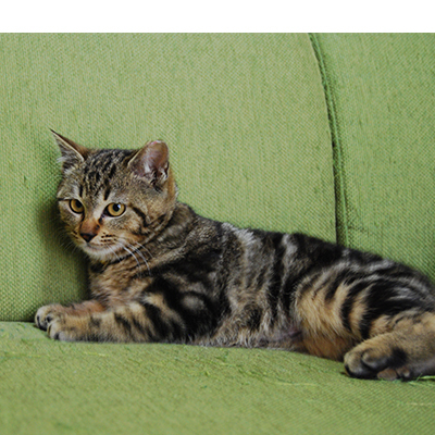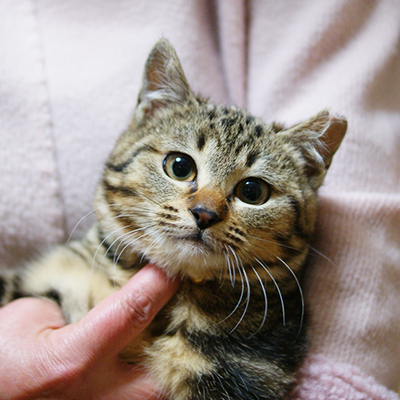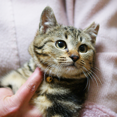 | 特徴(性格など) | 撫でられるのが大好きな甘え上手さん 大人猫さんの前ではゴロンとなって可愛がってアピール♡ クラシックタビーのキジトラ。アメショーの血統が混じっている美猫 遊んだあとは自らゲージ入りまったりする賢い子 |