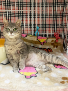| 特徴(性格など) | ☆★☆★現在お見合い予定がございます☆★☆★ 仮名を「ことなん」と言います。 グレーの女の仔。 女子力高いアッシュカラーがオシャレな「ことなん」。 センター収容猫です。 治療を終えて、また元気な猫生を歩めるようになりました。 といいますのも・・・ 交通事故に遭い、大腿骨と骨盤を骨折していましたが、現在は高いところにも上れるようになり、室内での日常生活支障なく過ごしています。 安静期間や通院も終了しました。 体重は3.5キロほどで(2023年2月現在)美ボディです♡ ことなんは他猫と遊んだり、一緒にいたりするところをあまりみませんので、里親さんの愛情を独占できるような環境がよいかなと思っています。 今後猫同士の関係に変化が見られるかもしれませんが、今はそのように感じます。 人馴れは問題なく、けれどひとりの時間も安心して過ごしているようですので、お留守番も常識の範囲内でしたら大丈夫です。 もちろん、親近感を育むように、一緒の時間も大切にしてあげてくださいね。 快食快便、健康状態良好です。 愛らしいことなんに、ぜひ会いに来てください。 【医療処置情報】これから実施のも含まれます *健康チェック *3種混合ワクチン接種 (年1回定期的にしております。詳細はお見合い時にお知らせいたします) *ウイルス検査実施(FIV.FeLV共に陰性) *検便実施 *駆虫薬投与(レボリューション、ドロンタール) *マイクロチップ装着 *不妊・去勢手術 *レントゲン *骨折箇所の外科治療 |