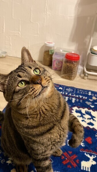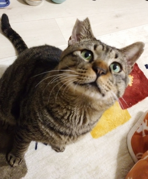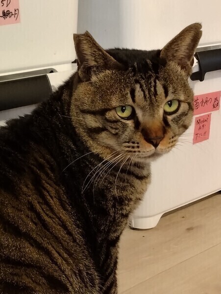 | 特徴(性格など) | どっしりした丸いフォルム ぷっくり形のマズル 上目遣いの困り顔 誰もがホッと癒される愛されキャラのキジトラくん。 仮の名を、見た目のまま「エもん」と名付けました。 好奇心旺盛で、どんな時にも我先に近づいてきて興味津々♪ 甘えたいときには上目遣いで横にきて、スリスリ頭をぶつけてくるかまってちゃんです。 どっしりした健康そのものボディは抱きごたえ満点! ボランティアさんからも大人気の猫ちゃんです。 一目見たら忘れられない、個性的なこの甘えた猫ちゃんをどうぞ家族に迎えてあげてください。 毎土日祝、譲渡会(Enn結び会)も行っていますので、ぜひ実際の エもんくんに会いに来てあげてくださいね(^^) 多頭飼いの場合は相性確認が必要です。 初めて猫を飼われる方も大歓迎! お迎えの際には勿論、スタッフが丁寧にアドバイスさせていただきます。 |