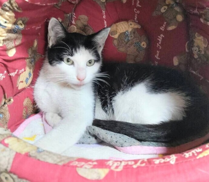| 特徴(性格など) | 【仮名】リンちゃん 【性格】個性的な白黒柄のリンちゃん☆ ぱっつん前髪がカワイイでしょっ?? えさやり現場に突如現れてナデナデさせてくれたので 遺棄された子かもしれません。 マイペースな子でお部屋では自由に過ごしています。 ナデナデするとお腹をみせてゴロゴロ。。。 環境に慣れるまで少し時間が必要かもしれませんので ゆったりとリンちゃんのペースに合わせてください♪ ※1ピキ譲渡可 |