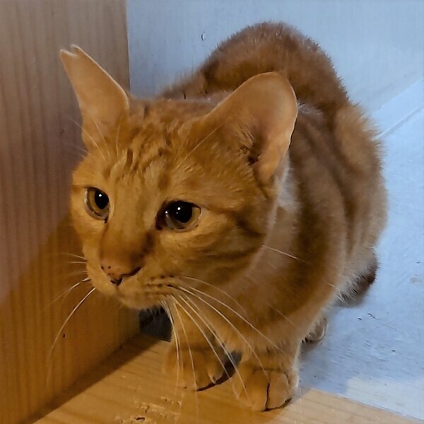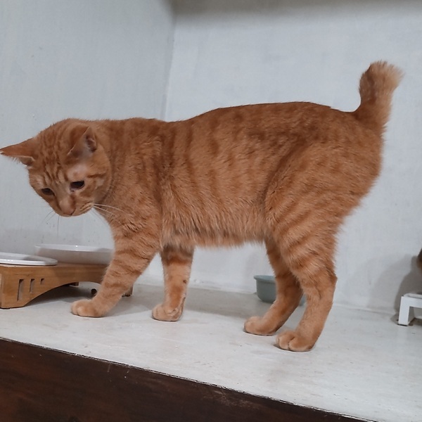 | 特徴(性格など) | 仮名:ダイ 毛色:茶トラ 瞳の色:茶色 尻尾:中くらいの長さのカギ尻尾 性格・特徴:子猫か女の子か?と思うほど、とっても小柄でキュートなおじさん猫です。 多頭崩壊宅から引き出した当時はガリガリで、もっと小さく見えました。 最初の数日だけ固まっていましたが、すぐにスリゴロに。 保護部屋に入ると真っ先に駆けつける甘えん坊になりました。 脚にまとわりついてくるので、踏んづけ注意です。 いろいろなものに興味深々で、足元でゴロンゴロンしていたかと思うと急に何かターゲットを見つけて、お尻をフリフリして駆け出すことも多く、性格や行動も子猫のようで本当にかわいらしいです。 シェルターでは思いっきり甘えさせてあげることができないので、何とか早く里親さんに巡り会って、いつでも甘えられる幸せを知ってほしいと願っています。 これまで辛い思いをしてきた分、愛情たっぷりに育てていただける方を希望します。 ほかの猫に対しては、ほとんどの子と仲良くしていますが、攻撃されると受けて立つところもあるので、仲がいい子と2匹で迎えていただけると安心です。 システムトイレも固まる砂のトイレも問題なく使っています。 右耳に桜カットあり。 健康状態:猫白血病、猫免疫不全ウイルスともに陰性。 ノミ・ダニ・お腹の虫の駆除済み。 慢性的に瞬膜が出やすく、お目目がとろんとしています。 おもちゃを狙う時や仲間にいたずらしようとしている時など集中力を使っている時だけ、なぜか瞬膜がひっこみます。 これも個性の1つとして愛してあげてください。 若干目ヤニが出やすいですが、よく懐くので拭いてあげるのも簡単です。 |