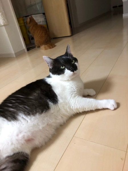 | 特徴(性格など) | 黒白柄。人懐っこくてモフモフです。体重が8kgありますが採血でも問題ありませんでした。優しくて、ちょっぴりビビりです(^^) | ||