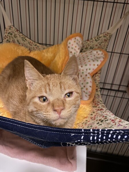 | 特徴(性格など) | 2022.10月生まれ位と思います。 保護時は痩せていて、激おこでしたが、 2日ほどで仲良くなれました。 心を許してくれてからは、撫でるととっても嬉しそうで 短いしっぽを立てて見上げてきます。 甘えんぼさんです。 猫付き合いは上手。 子猫ですが、大人猫とのおつきあいもよくわかっていてしつこくしません。 個性的なお顔がとってもかわいくて大きくなるのが楽しみなにゃんこです。 ★まだ子猫ですので1匹で長い時間のお留守番はできません。 ★一緒に写っているムギワラ柄の女の子ととても仲良しですので、可能でしたら2匹一緒に迎えていただけると嬉しいです。 |