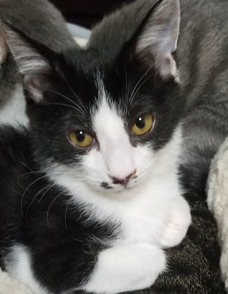 | 特徴(性格など) | ミルクから育てたので人馴れしています。抱っこするとチュッチュッと吸い付いてきます ハチワレ黒白の男の子6ヶ月ですが同じ月齢の子より小さくて可愛い子です |
