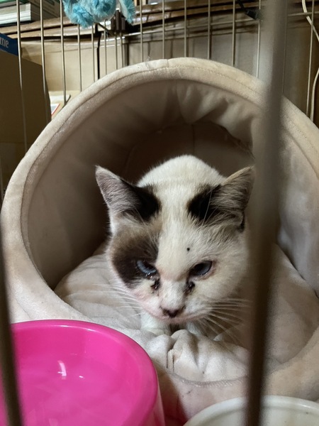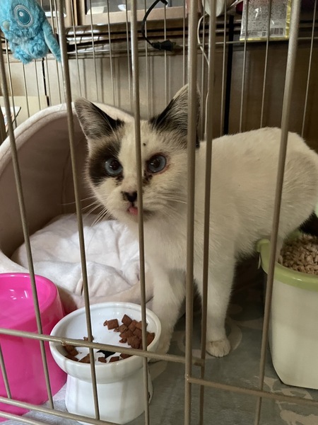 | 特徴(性格など) | 目の色と愛らしい目元のブチが特徴的です また甘えたがりのようです |