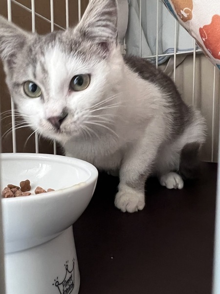 | 特徴(性格など) | サバ白の男の子、抱っこもできて温厚な子だと思います。 病院の診察もおとなしく先生もほめてくださいました。 良く食べるので投薬などは楽にできます。 抱っこするまではちょっと固まってしまいいますが、 抱っこするとすぐにゴロゴロ言っています。 |