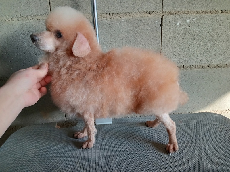 | 特徴(性格など) | 人懐こく、プードルとしては大人しい方だと思います。 室内トイレや散歩は練習が必要です。 あまり吠えません。 留守番中や就寝中はケージ内で大人しくしています。 他の子とも仲良くできます。 コートは固めで手入れはし易いと思います。 歯の状態が悪かったので何本か抜歯しました。 抜けそうな歯がまだありますが、無理に抜くよりも自然脱落の方が良いという事で残してあります。 陰睾丸だった為、睾丸が1個見付からず、片方のみの摘出となりました。 将来的に腫瘍化する恐れがある為、時々エコー検査を受けた方が良いです。 (時間経過と共に大きくなったりエコーで映るようになる事があるそうです) |