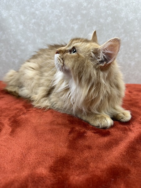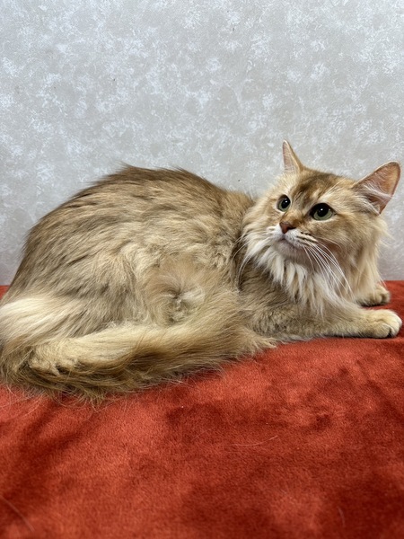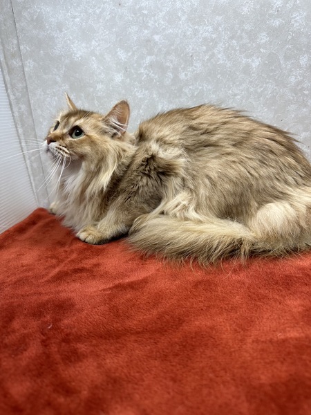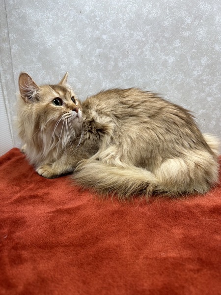 | 特徴(性格など) | 長毛で毛色はフォーンです。人懐っこくて甘えてきます。長毛なのでブラッシングしないと毛玉などが出来るのでよろしくお願いいたします。 | ||