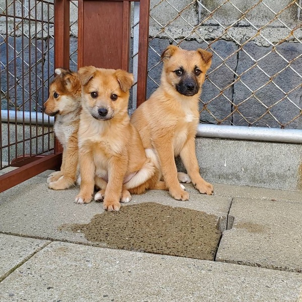 | 特徴(性格など) | ♡まだ生後2ヶ月位、男の子2匹と女の子2匹、野良ちゃんが生んだとっても可愛い臆病な雑種の子犬達ですฅ•ﻌ•ฅ 人と接した経験が無く、撫でられたり触れ合ったり人からの当たり前の愛情、優しさを知らないまま、お腹を空かせて寒いお外で必死に生きてきました。 突然親犬と離れ離れになり連れて来られて収容され、どんなに寂しく心細いか。 一日も早く温かい家庭の中で過ごさせてあげたいです。 ⭐️ 外飼いでは無く、室内飼育で家族の一員として迎えて下さる方、「引き渡し方法」のところにあります、【①〜のアンケート】にご回答と、No.どの子をご希望か、と共に、お問い合わせを頂けますようお願い申し上げます♡ ★No.15788 茶色の男の子 ★No.15789 茶色のフサフサ女の子 ★No.15790 茶黒の男の子 ★No.15661 茶色の女の子 無理もありませんが知らない場所、初めての環境でまだかなり怯えて怖がっています。 優しい職員さん方が大丈夫だよ、幸せになれます様にと毎日触れ合い、声掛けしながら一生懸命にお世話してくださっています(^^) お陰で収容当初と比べるとちょっとずつ馴れてきています♡ 人の目も見るようになり、おっかなびっくりながらも手から食べてくれるようになりました。 撫で撫でしてもひたすらジーっと大人しく固まって怯えていて、ただただ怖くてたまらない様子、必死に気配を消している感じで抱っこすると恐怖からお漏らししていましたが、今はしなくなりました(^^) でもまだ近寄ると逃げようとします。 人や新しい環境に馴れるまではまだ暫く時間を要するかと思われます。 栄養不良に不衛生な環境からの保護・収容でノミダニがついていました(><) 皮膚炎や脱毛は見受けられませんが栄養状態や健康状態がいいとは言い切れません。 体調も急変しやすいかと思われます(>_<) 何か病気や障害が有るのか、無いのかも分かりません。 今後、体調の急変などもあり得ることを念頭に置き、譲渡後は早急な病院受診が可能なご家庭を希望しておりますm(_ _)m 現在は1日に3回、ご寄付で送って頂いた栄養価の高い良質な仔犬用のドライフード(ネイティブドッグフードパピー)をミルクでふやかして食べています。 まだまだ幼い為、長時間のお留守番は出来ません。 特に子犬は不安や寂しさで夜鳴きする子が多いです。 今後の健康な成長の為に良質なフードを与える事が可能な方、人馴れしていない怯えている野犬の子犬ですが育てる覚悟のある方、出来れば犬の飼育経験のある方が望ましいです♡ ※子犬は思っていた以上にお世話が大変だと言われる方が多く、排泄も頻回で甘噛み期もあります。カミカミされると痛いです! 大事な社会化期で、特にこの子達は人馴れもこれからなのでご苦労もかなり多いと思います( ; ; ) 日に日に大きくなっていきますし、換毛期は抜け毛もわんさか、日々のブラッシングも必要です。 本当に大変ですが!m(_ _)m充分ご理解頂ける方。 ♡まだお散歩デビューは出来ませんが、怯えている事もありますし、今後成長していく中で、急な物音や知らない場所にビックリして怖がって、咄嗟に逃げよう、逃げようとする可能性も大いにあり得ます! その時の力、引きの強さも想定し、急な走り出しや高い塀や壁・柵の飛び越え・急な方向転換や首を振って後退りからの首輪抜け、胴輪抜けにはご用心です! 呼び戻しも教えなければなりませんし、パニックになったワンちゃんには呼び戻しもききません、もし逃がしてしまったらピューっと走って逃げて行ってしまう可能性大です!(>_<) もし逃がしたらもう捕まえられない!!というようにお考えくださいm(_ _)m ※繰り返しになりますがどんな子であっても、慣れてきても、常に、脱走・逃走には充分な注意と最大限の配慮と(二重扉、W首輪、胴輪にWリード)迷子札の装着 をお願いしております。 適切に制御し、躾や毎日朝晩のお散歩、運動の時間をしっかり取ることの出来る、沢山優しく触れ合って頂ける方。 先ずはじっくりと時間を費やし触れ合い、信頼関係を作っていく事の出来るご家庭を希望しております。 ♡人間が焦らずにゆっくり見守りながら、愛情を持って接ししっかりとお散歩にも連れ出して行けば、この子達はきっと徐々に新しい家庭に馴染んでいける、優しい家族に囲まれて思い切り甘えて遊んでほしいのだと思います。 当分の間はかなり手がかかり大変かと思いますがまだ子犬ですし、広い心で、例え長期戦でもドンとこい^_^と仰って頂ける方、 ビビリまくりの愛くるしいこの子達をいつか尻尾フリフリ♫ニコニコの笑顔にしてくださる方、いらっしゃいませんか? どうぞ宜しくお願い申し上げますm(_ _)m ⭐️必ず室内飼育で、譲渡後速やかに病院受診、健康診断、2回目3回目の混合ワクチン、生後4〜6ヶ月頃を目処に避妊、去勢手術をする事が可能なご家庭。 ⭐️まだまだ幼い為長時間のお留守番は出来ません。なるべくお留守番の少ない(4時間以内)沢山優しくスキンシップやコミュニケ
