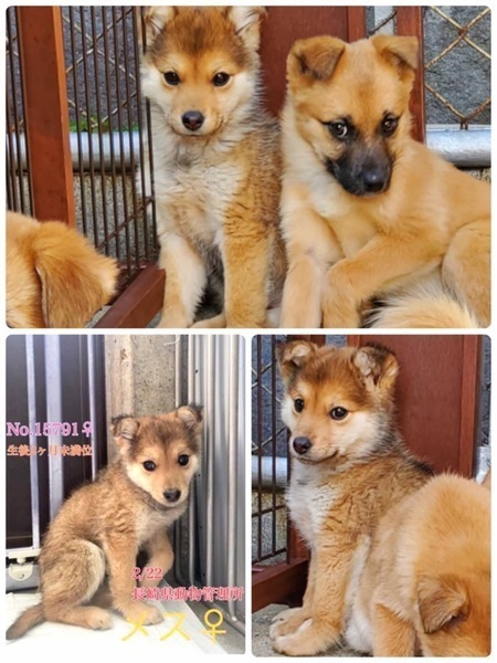 | 里親募集する理由 | ♡まだ生後2ヶ月位、男の子2匹と女の子2匹、野良ちゃんが生んだとっても可愛い臆病な雑種の子犬達ですฅ•ﻌ•ฅ ★No.15788 茶色の男の子 ★No.15789 茶色のフサフサ女の子 ★No.15790 茶黒の男の子 ★No.15661 茶色の女の子 人と接した経験が無く、撫でられたり触れ合ったり人からの当たり前の愛情、優しさを知らないまま、お腹を空かせて寒いお外で必死に生きてきました。 突然親犬と離れ離れになり連れて来られて収容され、どんなに寂しく心細いか。 一日も早く温かい家庭の中で過ごさせてあげたいです。 ⭐️県外、遠方の方でも譲渡の条件が合い、良縁に恵まれましたら里親になっていただけますのでどうぞ宜しくお願い致します! ※ ※ ※ 長くなりますが犬猫と里親様の幸せの為にも、募集内容を熟読し、必ずご家族とよく相談をされた上、ご家族全員の賛同を得られてからのお問い合わせ をお願い申し上げます※※※ ⭐️ 外飼いでは無く、室内飼育で家族の一員として迎えて下さる方、「引き渡し方法」のところにあります【①〜のアンケート】にご回答と、No.どの子をご希望か、と共に、お問い合わせを頂けますようお願い申し上げます♡ ★No.15788 茶色の男の子 長崎県の離島、壱岐市芦辺町内、郷ノ浦町内にて2/20、2/22にそれぞれ保護され、現在は長崎県動物管理所へ移送されてきています。この地域は野犬が多く、周りに民家の少ない山の中です( ; ; ) 無理もありませんが知らない場所、初めての環境でまだかなり怯えて怖がっています。 優しい職員さん方が大丈夫だよ、幸せになれます様にと毎日触れ合い、声掛けしながら一生懸命にお世話してくださっています(^^) お陰で収容当初と比べるとちょっとずつ馴れてきています♡ 人の目も見るようになり、おっかなびっくりながらも手から食べてくれるようになりました。 撫で撫でしてもひたすらジーっと大人しく固まって怯えていて、ただただ怖くてたまらない様子、必死に気配を消している感じで抱っこすると恐怖からお漏らししていましたが、今はしなくなりました(^^) でもまだ近寄ると逃げようとします。 人や新しい環境に馴れるまではまだ暫く時間を要するかと思われますm(_ _)m 栄養不良に不衛生な環境からの保護・収容で、ノミダニがついていました(><) 皮膚炎や脱毛は見受けられませんが栄養状態や健康状態がいいとは言い切れません。 体調も急変しやすいかと思われます(>_<) 何か病気や障害が有るのか、無いのかも分かりません。 ★今後、体調の急変などもあり得ることを念頭に置き、譲渡後は早急な病院受診が可能なご家庭を希望しておりますm(_ _)m 現在は1日に3回、ご寄付で送って頂いた栄養価の高い良質な仔犬用のドライフード(ネイティブドッグフードパピー)をミルクでふやかして食べています。 まだまだ幼い為、長時間のお留守番は出来ません。 特に子犬は寂しくて夜鳴きする子も多いです。 ※今後の健康な成長の為に良質なフードを与える事が可能な方。 ※大事な社会化期で、これから甘噛み期やトイレの躾など、何かと手がかかりますが育てる自信と覚悟のある方。 出来れば飼育経験のある方が望ましいです♡ ※子犬は思っていた以上にお世話が大変だと言われる方が多く、排泄も頻回で甘噛み期もあります。カミカミされると痛いです! ご苦労もかなり多いと思います( ; ; ) 日に日に大きくなっていきますし、換毛期は抜け毛もわんさか、日々のブラッシングも必要です。 本当に!大変ですがm(_ _)m充分ご理解頂ける方m(_ _)m まだお散歩デビューは出来ませんが怯えている事もありますし、今後成長していく中で、急な物音や知らない場所にビックリして怖がって、咄嗟に逃げよう、逃げようとする可能性も大いにあり得る事だと思います。 その時の力、引きの強さも想定し、急な走り出しや高い塀や壁・柵の飛び越え・急な方向転換や首を振って後退りからの首輪抜け、胴輪抜けにはご用心です! 呼び戻しも教えなければなりませんし、パニックになったワンちゃんには呼び戻しもききません、もし逃がしてしまったらピューっと走って逃げて行ってしまう可能性大です!(>_<) もし逃がしたらもう捕まえられない!というようにお考えくださいm(_ _)m ※繰り返しになりますがどんな子であっても、慣れてきても常に、脱走・逃走には充分な注意と最大限の配慮(二重扉、W首輪、胴輪にWリード)そして、迷子札の装着 をお願いしております。 適切に制御し、躾や毎日朝晩のお散歩、運動の時間をしっかり取ることの出来る、沢山優しく触れ合って頂ける方。 先ずはじっくりと時間を費やし触れ合い、信頼関係を作っていく事の出来るご家庭を希望しております。 ♡人間が焦らずにゆっくり見守りながら、愛情を持って接ししっかりとお散歩にも連れ出して行けば、幼いこの子達はきっと徐々に新しい家庭に馴染んでいける、本当は優しい家族に囲まれて思い切り甘えて遊んでほしいのだと思います。 当分の間はかなり手がか