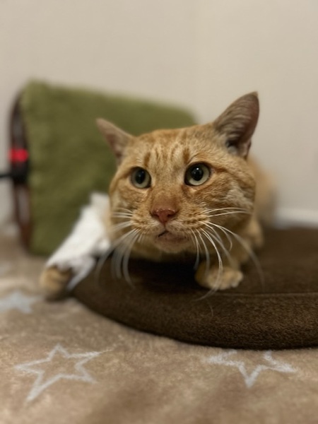 | 里親募集する理由 | うちは犬が2匹おり、猫が怖がってしまいます。茶トラ特有の甘えん坊さんなので、できたら在宅時間が長い方に可愛がっていただきたく募集いたしました。キズをカバーしている物を取ってしまうのでエリザベスカラーをしていますが、側に人がいるとエリザベスカラーを外していても良い子にできます。宜しくお願いいたします。 | ||