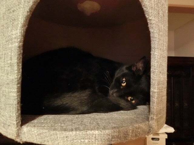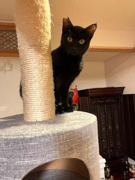 | 特徴(性格など) | 仮名: クロスケくん(オス) 毛色: 黒猫 性格: 穏やかで優しい子です。 臆病なので、少し唸ってしまいますが、噛みついたりひっかいたりの攻撃性はありません。 保護宅では同じ年頃の猫達とも楽しそうに遊んで協調性はあります。 大人しい仲良し猫といつもべったりっくっついています。 |