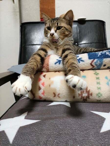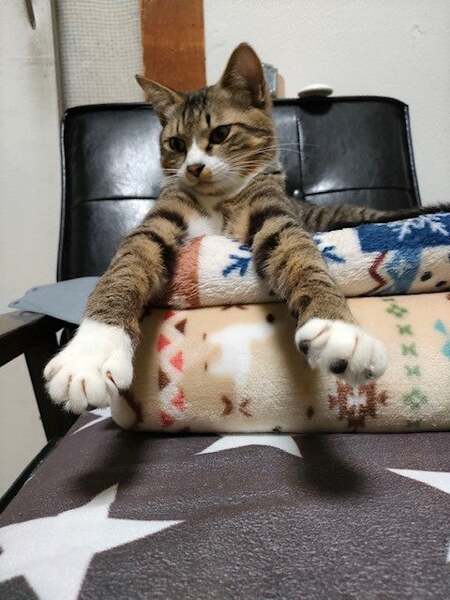 | 特徴(性格など) | 仮名: コン君(オス) 毛色: キジ白 性格: 交通事故でセンターに収容されました。 大腿骨を骨折していました。 ココニャン一家の縁結びさんによって引き出しと治療。 元気になってずっとのお家さがしのスタートです。 とにかく明るい性格で、物怖じもあまりありません。 遊んでくれるなら誰でも好き。 ご飯も好きで良く食べます。 |