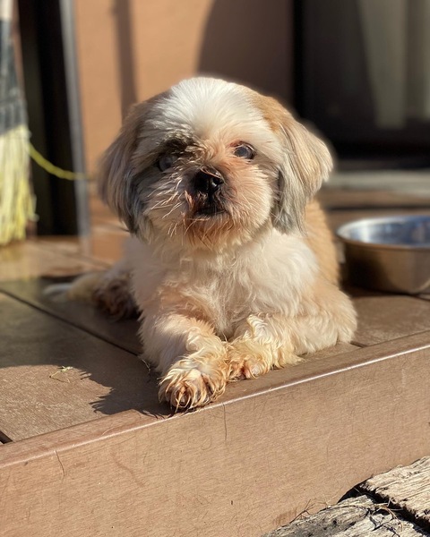 | 特徴(性格など) | 推定10才前後の男の子です。 愛護センターの職員さんの点眼で徐々に目の状態も回復し 引き取った際はこざっぱりとしていたので別の犬のような愛らしさでした。 点眼も大人しくさせてくれるとても穏やかな子です。 性格は非常によく、人がとにかく好きで、 おひざの上で眠りたい。 夜も一緒の布団で眠りたい。 腕枕で寝かしつけて欲しい・・・超がつくほど甘ったれタイプです。 ただ、かと言って構って構ってと一日中絡んでくるわけでもなく 非常に安定した性格だと思います。 無駄吠えも殆どありません。 ご飯の好き嫌いもありません。 初対面の人にもこんにちは!こんにちは!こんにちは!とごきげんに挨拶ができるので近所のアイドル間違いなしです。 お散歩もるんるんと歩きますが足が少し弱いのでゆっくりとしたペースで行けたらいいでしょう。 目の悪くなりやすい犬種ですので引き続き目のケアを続けてくだされば こんなかわいい相棒は他にいないでしょう。 他の犬とは一定の距離を取ってそつなくこなせますが相性もありますのでできれば一頭での飼育がベストです。 |