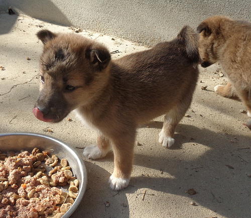 | 特徴(性格など) | 今日の体重:1.5kg 性格:人が大好きな甘えん坊さんのメス子犬、仲間の子犬たちと元気に遊び社会性を学習中です。 医療面:健診済み・駆虫済み ノミダニ予防済み フィラリア予防薬投与済み 初回ワクチン接種済み |
