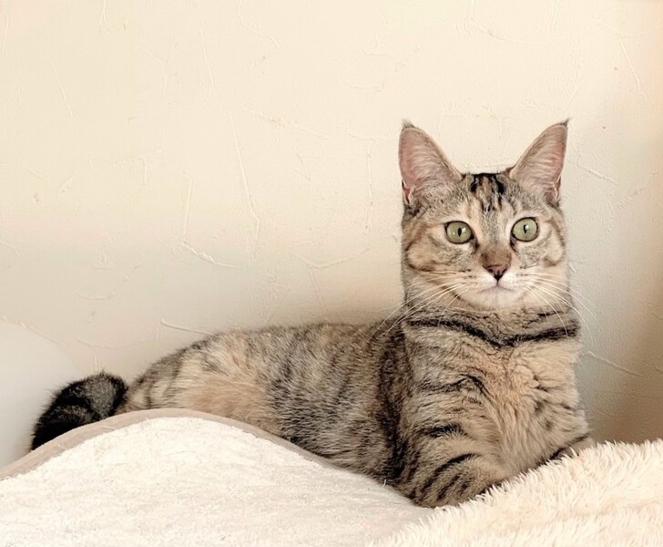 | 特徴(性格など) | 【仮名】マースちゃん 【性格】うすいキジトラ模様が可憐さを思わせるマースちゃん☆ 人馴れ具合はレベル3くらい??ですが、 あごの下やお顔周りのナデナデが好き♥ オヤツのおねだりがとっても上手で 人がキッチンに立つとカウンターにパっと来て 可愛いお顔をして熱い視線を投げかけてきます。 あげずにはいられなぁ~い! 手のひらの上におやつを乗せるとパクパク食べてくれます。 皆さんの愛情でレベルMAXのベタ馴れニャンコに仕上げて下さい♪ 先住ちゃんがいるオウチの方がさみしくて泣かないと思います。 ※1ピキ譲渡可 |