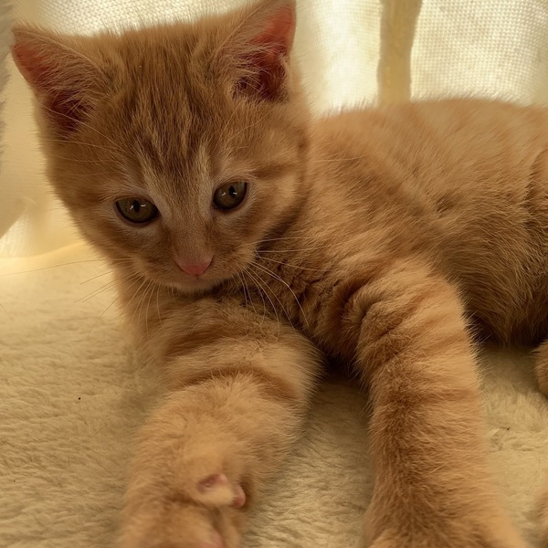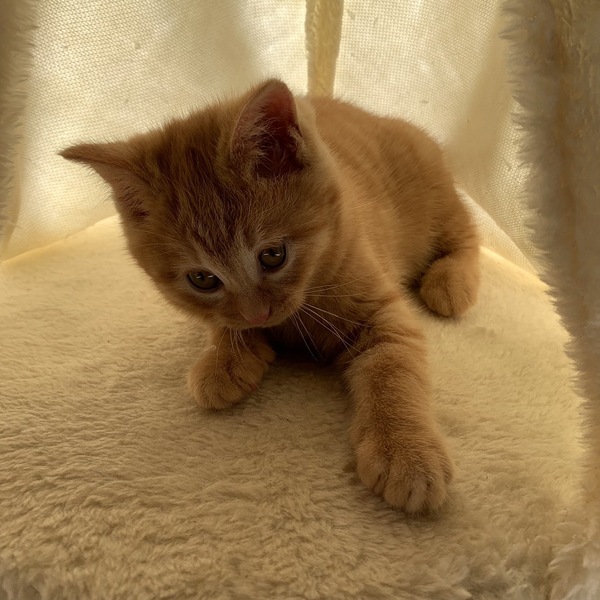 | 特徴(性格など) | 良く食べて良く動く、好奇心旺盛な活発の茶トラです。 トイレは覚えたてで失敗する事があります。 |