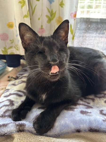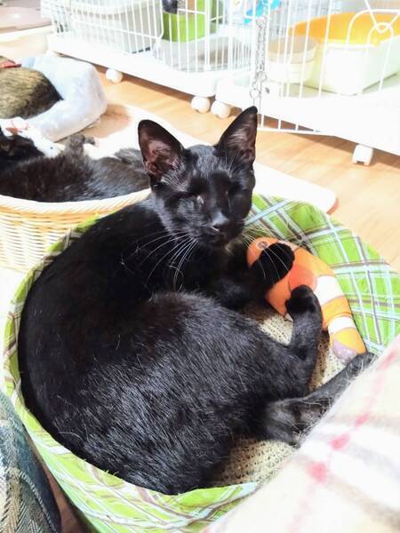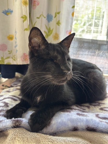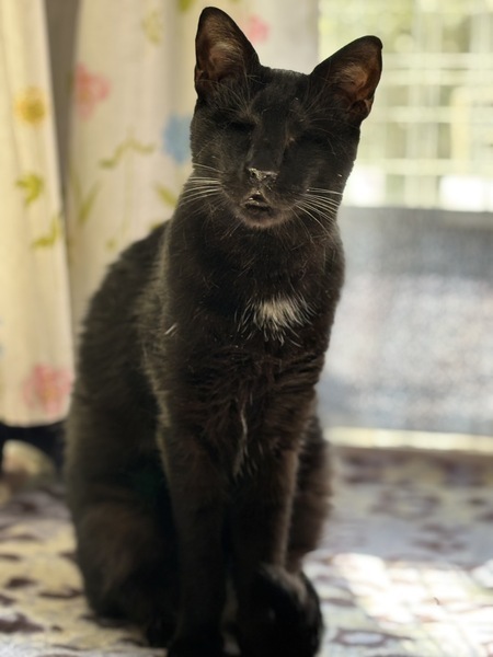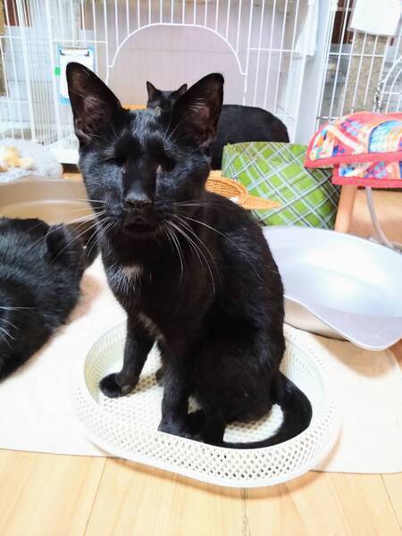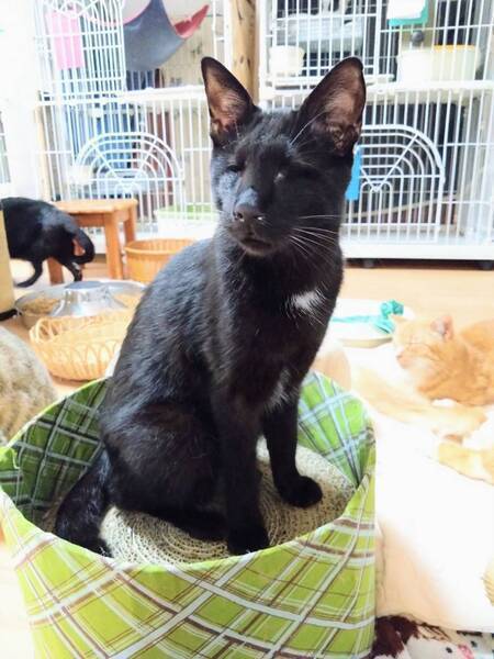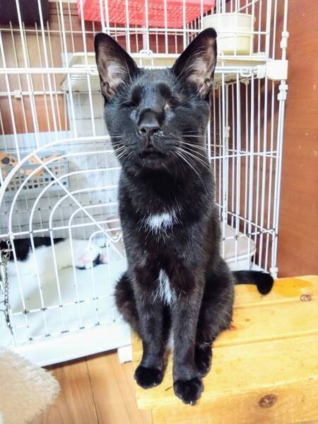 | 特徴(性格など) | ◆くろみんくん 両目ハンデの人懐っこい甘えん坊男子 ○栃木動物愛護指導センターより引き出しました。 ○推定3歳くらい(2025年3月時点)の黒猫の男の子です。体重は3.1kg(2023年6月14日時点)です。 ○チャームポイントはお腹や胸の辺りに生えている白い毛です♬ ○2023年1月に右眼、6月に左眼の摘出手術を受けています。 ○両目摘出していますが生活に問題はないようです。自分でトイレの場所も探して入れますし、ご飯も食べられます。高い場所にも登っていたり、おもちゃで遊んだりもします。 ◯全然物怖じしない、たくましい子です。 ◯ご飯を準備している音や匂いに機敏に反応して、ガツガツやってきます。美味しいご飯大好きです。 ◯他の猫達とも仲良く暮らしています。ただ他の猫にちょっかい出されたらちゃんとやり返します。目が見えなくても泣き寝入りするような弱々しい子じゃないです。 ○人に対してもとっても懐っこい甘えん坊です。かまって貰えるととっても喜ぶ可愛い男の子です。 ★ワクチン1回済み、不妊手術済み。 ★猫エイズ陽性、猫白血病陰性。 ★両眼摘出手術を受けていますが生活に問題はないようです。 ○猫エイズ陽性(キャリア)ですが、現時点では発症しておらず、健康な猫とかわりません。元気に過ごしています。 ☆『猫エイズウイルス』陽性の猫は敬遠されることがたびたび。でも、本当はそんなに怖くない病気です。 猫エイズウイルス陽性の子も、ハッピーに暮らせます。 ☆単身のかたはご相談ください。 ○YouTubeにも動画を上げています。こちらもご覧下さい。 「くろみん」 https://youtu.be/-71IgTT8IWk ○HGA48犬猫ニュースチャンネルにて、オンライン譲渡会を開催しました。くろみんくんを紹介しておりますので、ぜひこちらもご覧下さい(開始1時間5分頃〜)。 https://www.youtube.com/live/YJDk8zS82Hk?si=68rjEYlxMcebzCOK ★★お見合いを設定することも可能です。まずはお申込みください★★ |