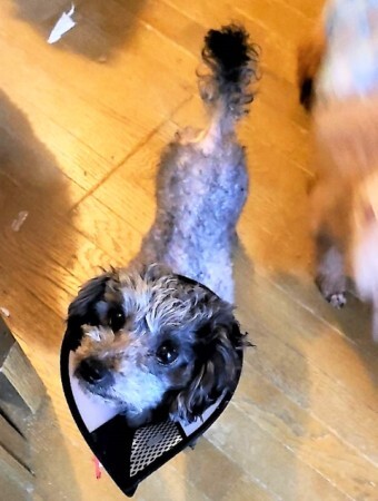 | 特徴(性格など) | 犬種:MIX(チワワ×マルチーズ×プードル 毛色:ブラック 年齢:2019年8月7日生まれ 体重:1.6キロ 性格:フレンドリーで甘えん坊です トイレ:トレーニング中です 散歩:トレーニング中です 日常の様子:甘えてきたり、犬達のベットで一緒にくつろいだりしています お手入れ :毎月のトリミング・毎日のブラッシング・歯磨き・耳掃除・涙やけケアなど ※トリミング犬種なので、必ず毎月1回サロンでトリミングをして可愛く清潔にして頂ける方、それだけの経済的余裕がある方を希望します フード:フィッシュ4 健康状態 フィラリア 陰性(-) ワクチン 6種混合接種済み マイクロチップ 装着済み 避妊・去勢 避妊手術済み 触診・聴診・血液検査・検便、異常なし 駆虫薬投与・ノミダニ駆除済み・スケーリング済み かなり痩せていて毛が薄く、頭の天辺が剥げています |