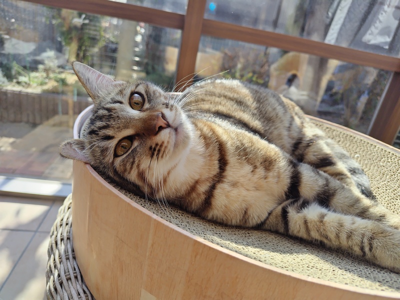 | 里親募集する理由 | TNRの活動の中で親子で捕獲しました。親は避妊手術してリリース。子供達は、幼かった為、保護して里親募集しています。当初、3ヶ月くらいでしたが、人馴れしてなくて、家猫修業して現在に至ります。今は触ったり抱っこも出来ます。 | ||