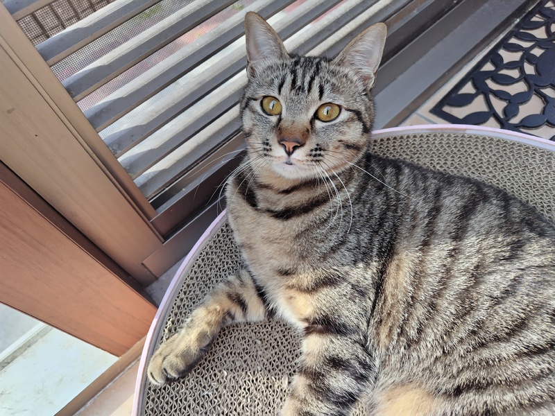 | 里親募集する理由 | TNRの活動の中で親子で捕獲しました。親は避妊手術してリリース。子供達は、幼かった為、保護して里親募集しています。当初、3ヶ月くらいでしたが、人馴れしてなくて、家猫修業して現在に至ります。今は触ったり抱っこも出来ます。 | ||